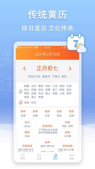 4、提供黄历、宜忌、节假日查询,集节日二十四节气、节假日于一体,传统节日可以随时随地查看