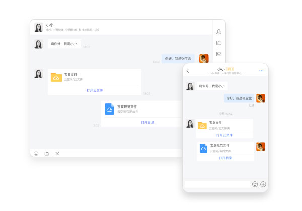 一对一或群聊过程中可以随时开启高质量音视频会议,支持桌面和移动端,无惧外出,即使异地办公也能实现面对面高效沟通。