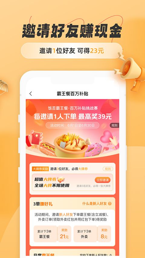 1、与美团、饿了么等主流外卖平台深度合作,每日提供大额无门槛红包,用户可叠加使用实现低价甚至零元用餐。