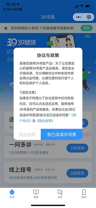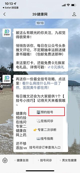 3、关注39健康网进行挂号。