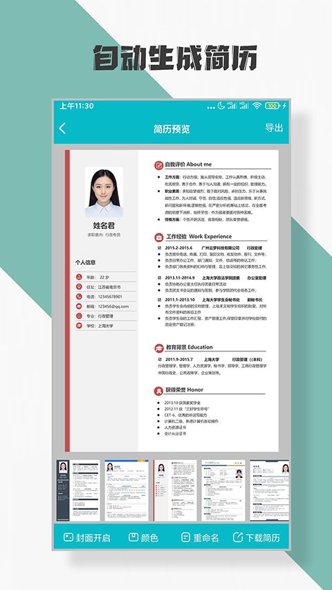 2、只要一键就可以生成自己想要的简历,操作非常的智能;