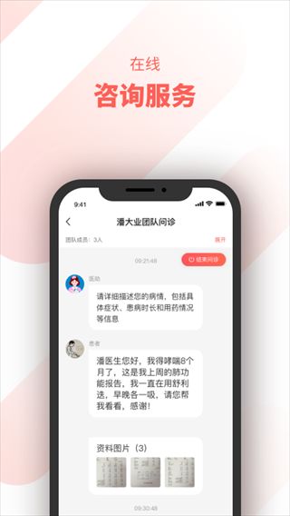 5、开始接诊后,患者可在用户端看到在线医生,随时进行问诊咨询。