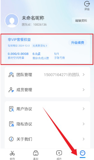 6、个人中心集中显示账户资料、服务套餐详情以及团队管理相关设置