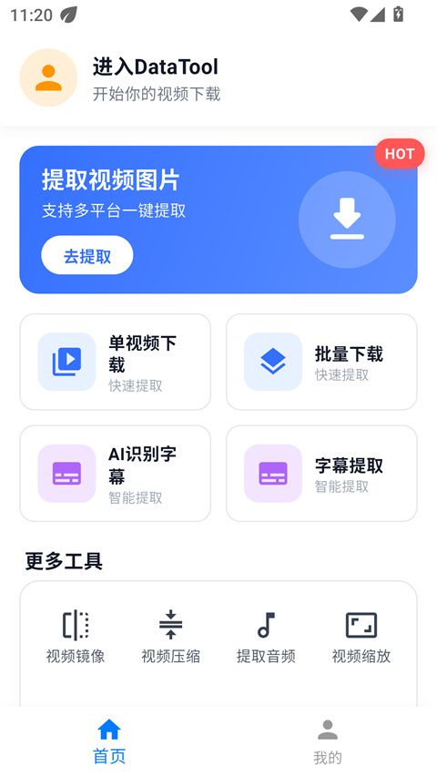 DataTool手机版是一款支持多平台视频提取的实用工具,兼容B站、抖音、小红书等网站资源下载,支持批量快速下载,并自动去除水印,最高可提取4K分辨率视频,智能识别并提取字幕,操作简便易上手。此外,DataTool内置视频工具箱,包括视频镜像、视频压缩、音视频分离与合并等,满足用户多样化的视频编辑需求。有需要的小伙伴可以在本站下载使用~