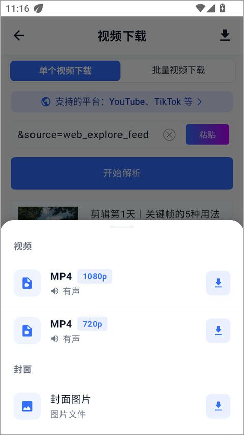 4、解析完成后,点击下载,支持多种分辨率选项
