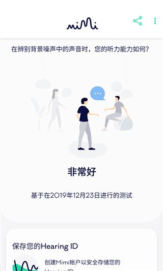mimi听力测试app是一款用于检测你个人听力水平的应用软件,有了这款软件,可以准确的帮你检测听力损失情况,让您对自己的听力有所了解。软件使用步骤非常的简单,您只需要戴上耳机,然后找一个安静的场景进行测试,这样就能快速检测您的听力数据了。不仅如此,根据你的听力水平,软件将听力检测数据结果自动转换为分析报告,让你可以更好的了解自己听力健康,长期以往的检测听力,还能有效提高你听力能力。有了这款软件,测试听力不需要任何校准设备,可以随时随地测试,有需要的朋友千万不要错过了,快来下载吧。