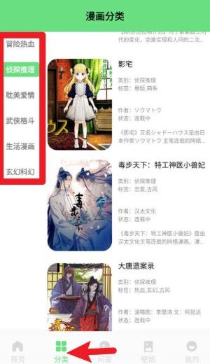 3、在漫画分类页面里,点击你喜欢的分类标签就能马上找到对应的热门漫画开始阅读。