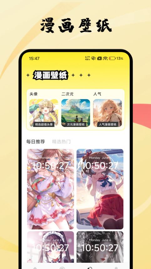 2、进入动漫壁纸页面,挑选喜欢的插画就能一键设置为手机壁纸。