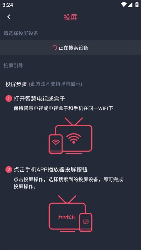 2、投屏设备与手机需要处于同一网络环境下,搜索到之后即可成功投屏
