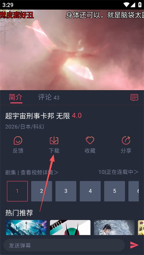 1、打开要下载的动漫,点击下载