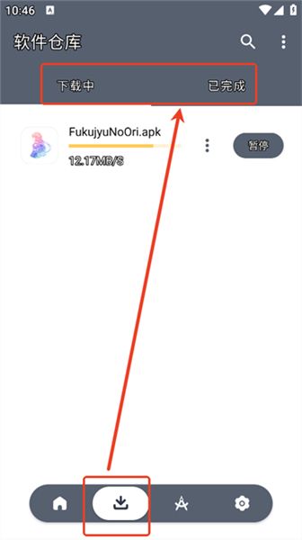 4、可以在下载区看到正在下载或是已完成下载的应用。