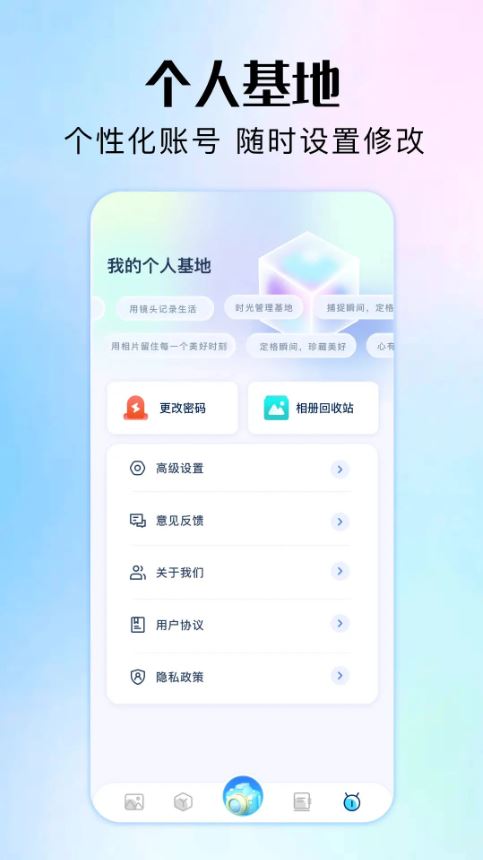 展示了用户专属的个人基地,对相关的账号可以实现随意的设置修改,设置自己的账号信息。