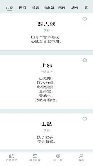 2、点击朝代名作可以观看不同朝代的古诗词。