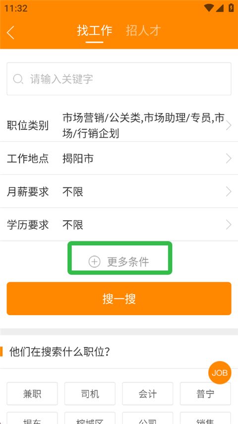 3、点击【更多条件】,可进一步完善筛选要求。