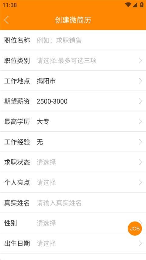 7、若之前未创建微简历,现在可创建,创建好即可发送简历。
