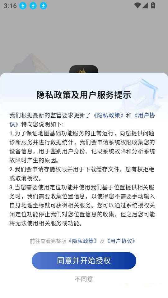 1、首先打开应用点击“同意并开始授权”按钮来进入app中。