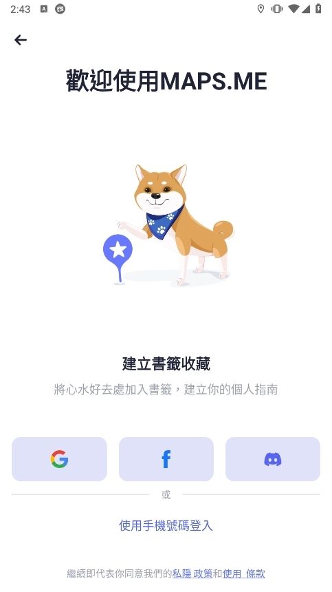 首先运行MapsMe后可以先进行登录,你可以直接使用手机号或者谷歌账号登录。