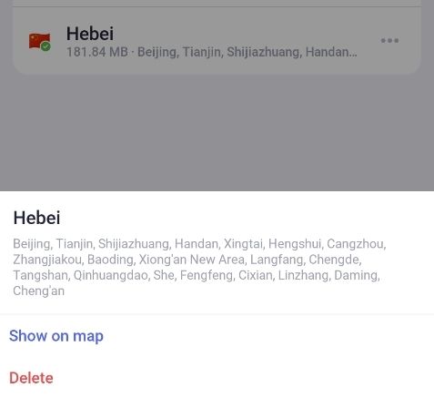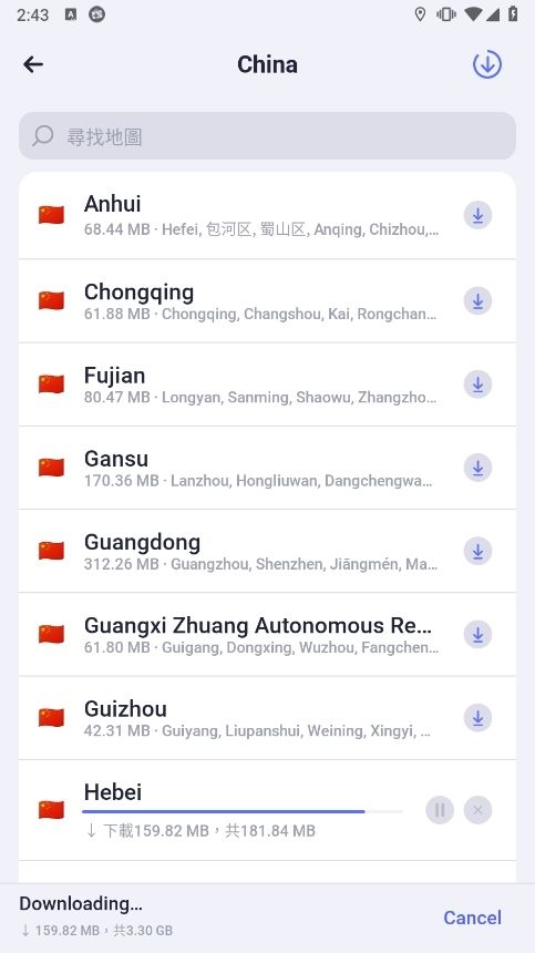 之后下载你当前所在地图的离线地图,也可以下载国内其他地区以及其他国家的地图。