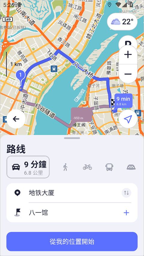 3、下载完成后就可以离线查看地图,并进行离线路线规划等常规地图操作了