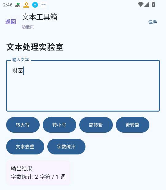 在文本工具箱功能中可将各种文本内容进行简繁体转换、字数统计操作。