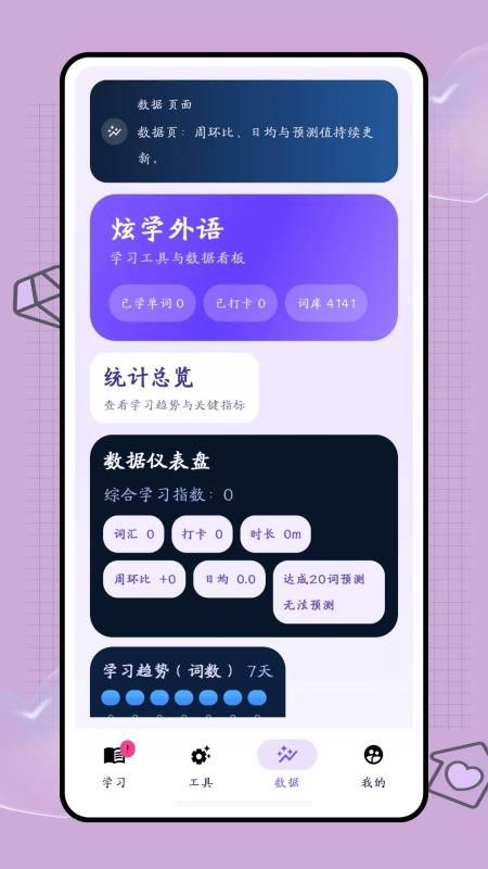 将用户的学习数据实时统计,用户可以查看你的学习数据了解你的学习情况。