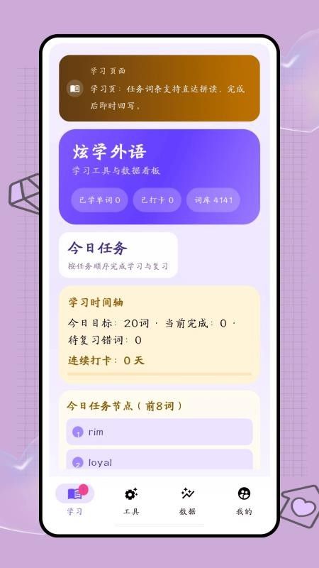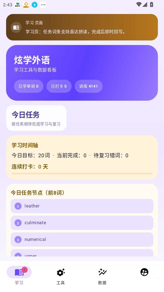 可随时查看你的今日学习任务,可按照你的任务目标进行单词学习。