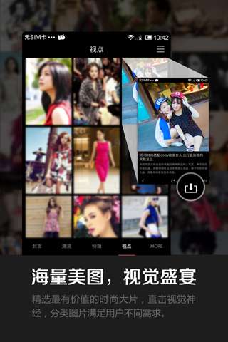 精选最有价值的时尚大片,直击视觉神经,分类图片还满足不同用户的不同需求。