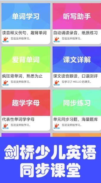 迈级剑桥少儿英语同步学App完全对标标剑桥少儿英语YLE starters, Movers, Flyers三个级别的考试。通过图解趣学、单词带读,游戏过关,趣味听写,交互练习等多维度记忆方式,帮助广大剑桥少儿英语学习者和考生轻松快乐高效背单词!