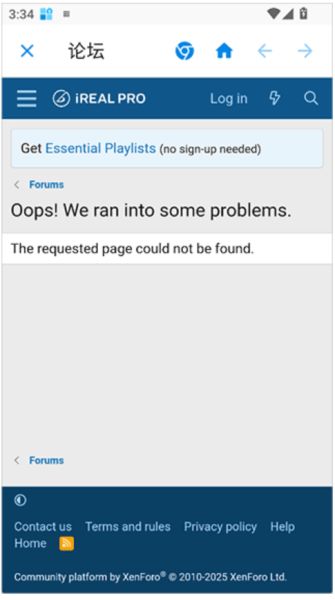 1、在 iReal Pro 主界面,点击左上角或侧边栏的 “地球”图标(即 Forums/论坛)。