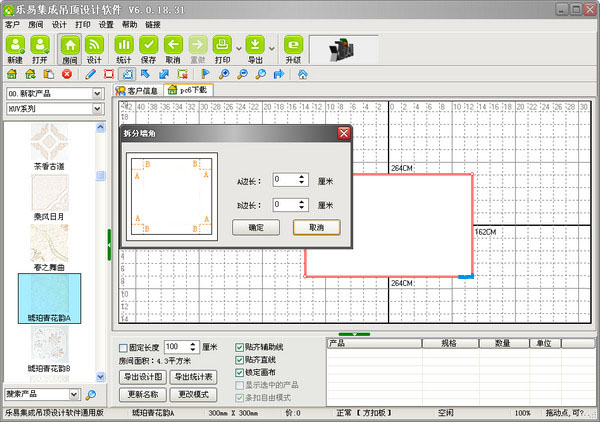 1.4 软件设计吊顶窗口:软件的设计吊顶填充产品时的窗口及其说明如下:
