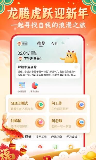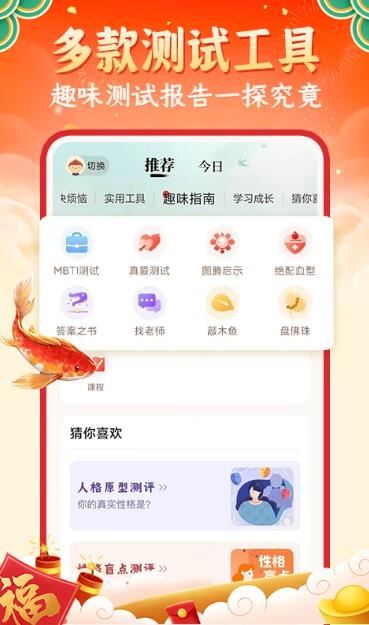 4、实用工具:传统黄历择日,风 水罗盘,开运动态壁纸,手机号码测算,起名解名等精品应用。