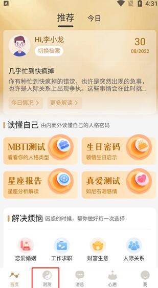2、西方星相:拥有西方最古老专业的占 卜测试,更有性格、人格、情商等测试。
