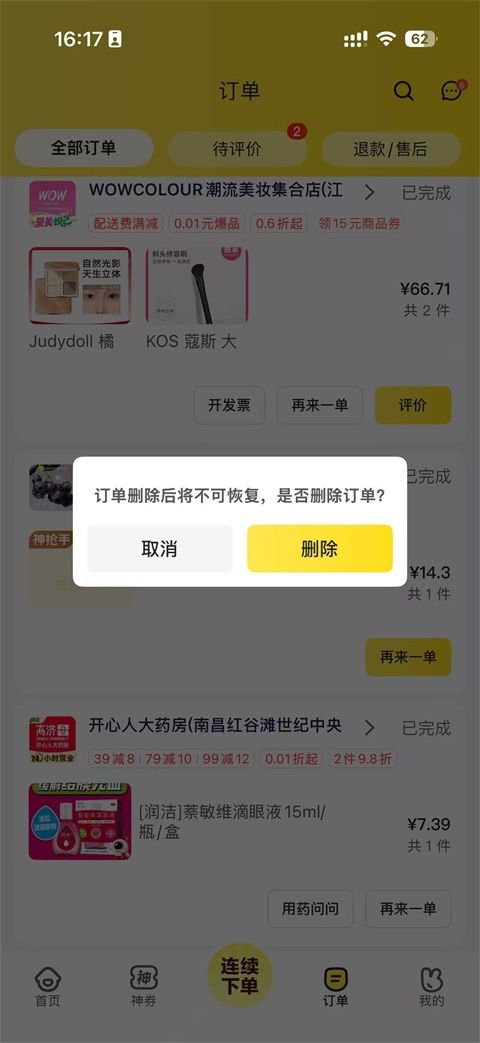 美团外卖app订单如何删除/美团外卖订单删除教程