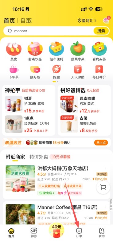1、在首页中有专门点外卖的功能,里面都是经过精心筛选而展现在大家面前的。