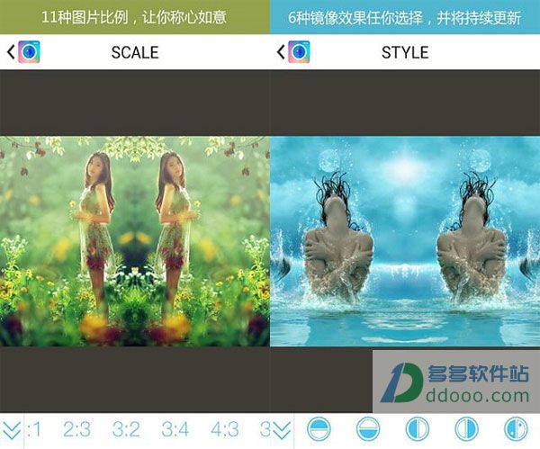 魔镜大师是一款非常强大的图片镜像效果生成软件,能够轻松将一张普通的图片修改为令人瞩目的图片,并且对图片的编辑和调整进行了一个大幅度的更改,能快速的将图片分割成不同比例,并做出左右上下滤镜的效果!魔镜大师app拥有6种不同的镜像样式之间迅速切换、13种图像比例任你选择:从1:1、4:3,到16:9、还能够任意的放大、缩小、旋转、翻转你的图片,是目前手机软件中最为给力的软件!