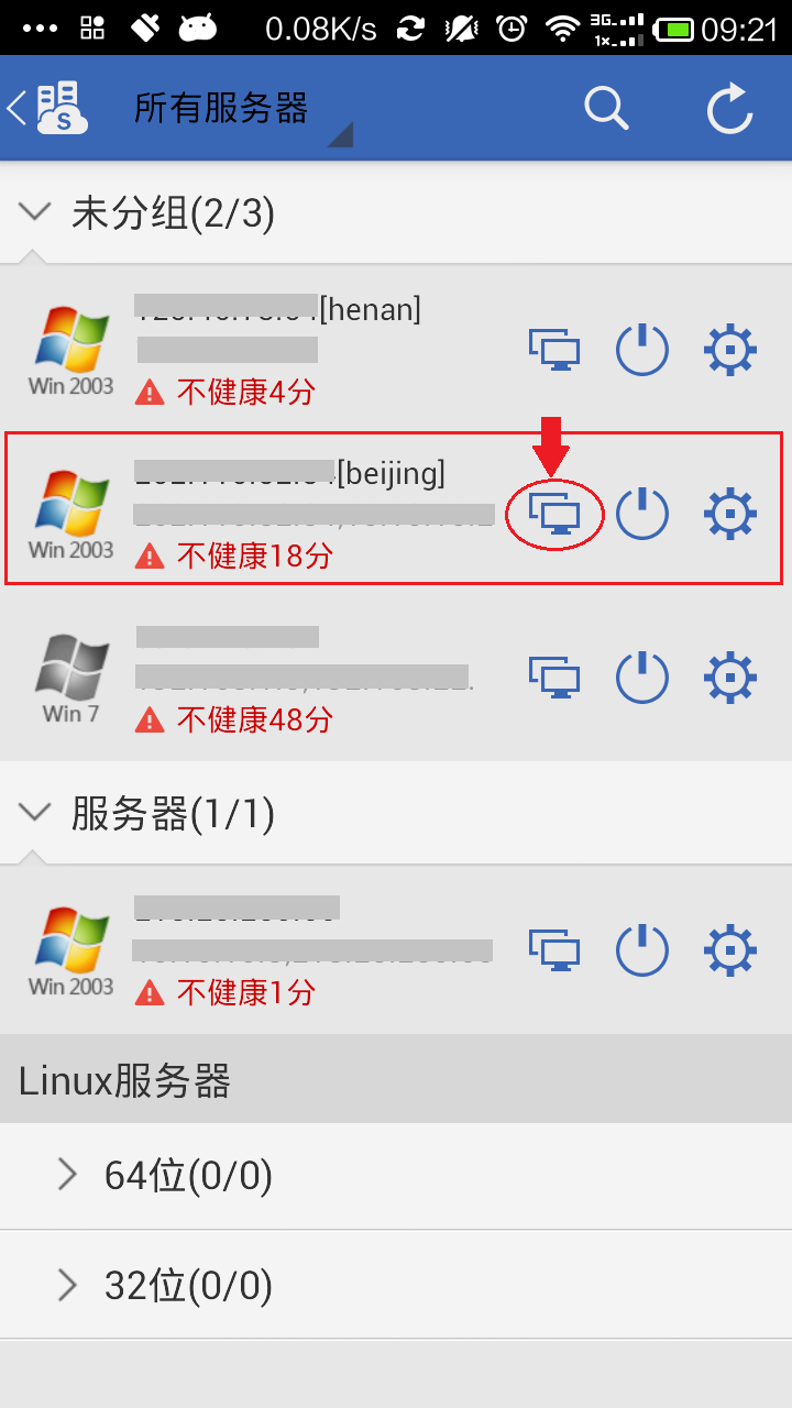 在手机上处理服务器问题的过程:第一步:进入服务器列表快速找到那台服务器。