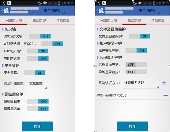 安全狗设置包括:网络防火墙、主动防御、体检修复。