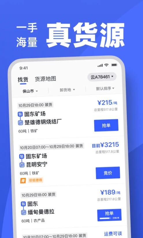 瑞和司机端是专注于大宗商品物流领域,为司机提供综合性服务的配货交易平台,业务范围覆盖整个云南及周边地区,它是集专业配货,司机抢单,油品业务,结算回款,运费预付等功能为一体的司机赚钱好帮手。一手海量真货源,快速回款,费用透明公开有保障,简单操作,是百万司机找货首选好平台。