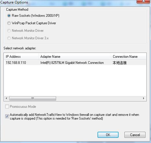 打开NetworkTrafficView软件,出现捕捉选项窗口,默认选中Raw Sockets (Windows 2000/XP],并显示网络甜酸轩信息,点击ok即可。
