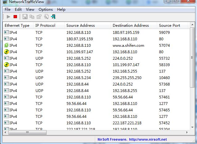 NetworkTrafficView是一个通过你的网络适配器传递的网络数据包监测工具捕获工具,并显示您的网络流量的一般统计数据。