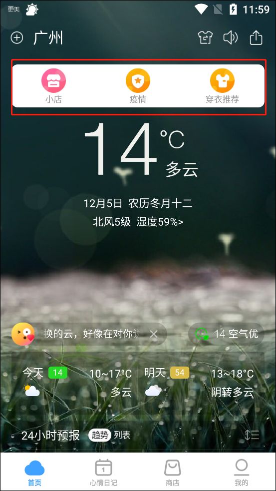 吐槽对天气和人生的见解,语音播报,作为起床闹钟,更换天气背景,美景我做主。