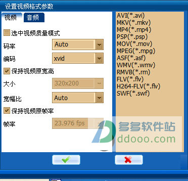 9.支持11种输出格式:AVI MKV MP4 PSP MOV MPEG ASF WMV RM FLV SWF
