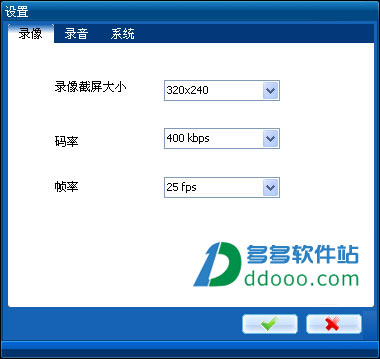 用户也可以根据自己的需要来设置录制视频区域的大小,单击魔录大师主界面上的“设置”按钮,然后在打开的设置窗口当中,用户可以对录制的视频大小、声音及存储路径等进行设置。
