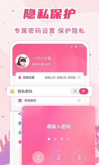 2、简洁温馨的页面设计,没有多余复杂的社区,为您提供最核心最简洁最专业的经期服务。
