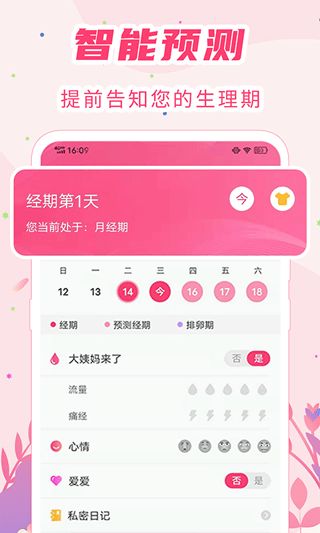 经期、排卵期、黄体期、卵泡期 精准预测。