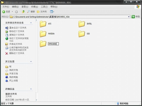 在刚才解压出来的Drivers_vga包的文件夹里新建一个文件夹 命名为vmware(其实叫什么都随便 但这样放的话以后好自己改至少知道是啥)
