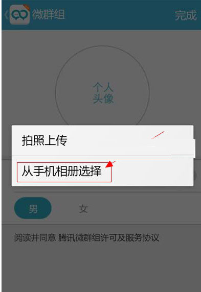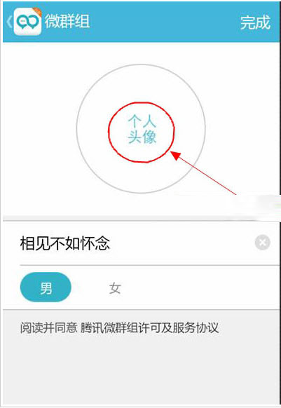 第四步:上传完成之后,我们点击完成,如图所示。我们之后就进入到微群组的界面。