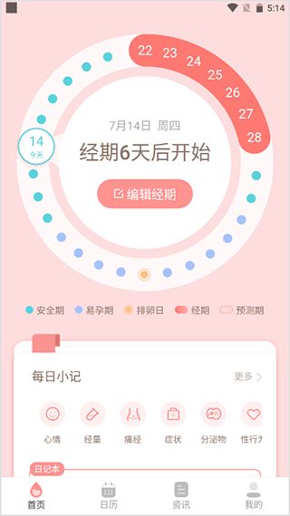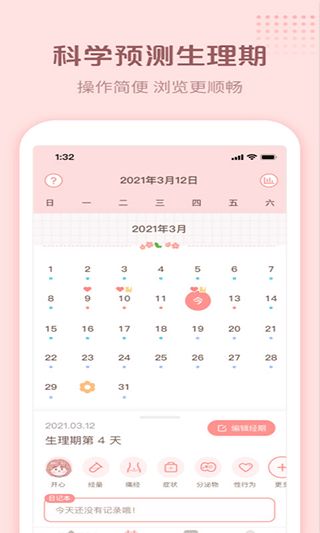 4、女生的贴身健康管家,记录、预测、提醒,一应俱全,让你避免忘记经期的尴尬。