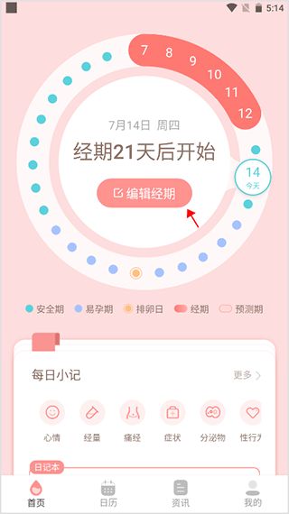 2、记录月经周期的天数,在平台里能够清楚的查看,快速的使用。