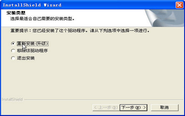 选择重新安装(升级),然后点击下一步,完成后重新启动计算机